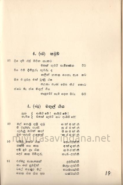 අමරදේවයන්ගේ ගායනයේත් අඩංගු වන්නේ මඟුල් ගීයේ මුල් පැදි තුන (49, 50, 51) සහ තවත් පැදි දෙකක (55,56) පද එකතු කර ගනිමින් සහ තරමක් වෙනස් කරමින් සාදා ගත් පැදියක් පමණයි.